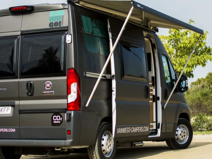 Viajar con toldo en verano hace toda la diferencia. Cuando hace calor dentro de la furgo pero el sol empieza a quemar demasiado, es una bendición poder crear una terraza sombreada en pocos segundos. Por eso siempre montamos un toldo en todos nuestros modelos.